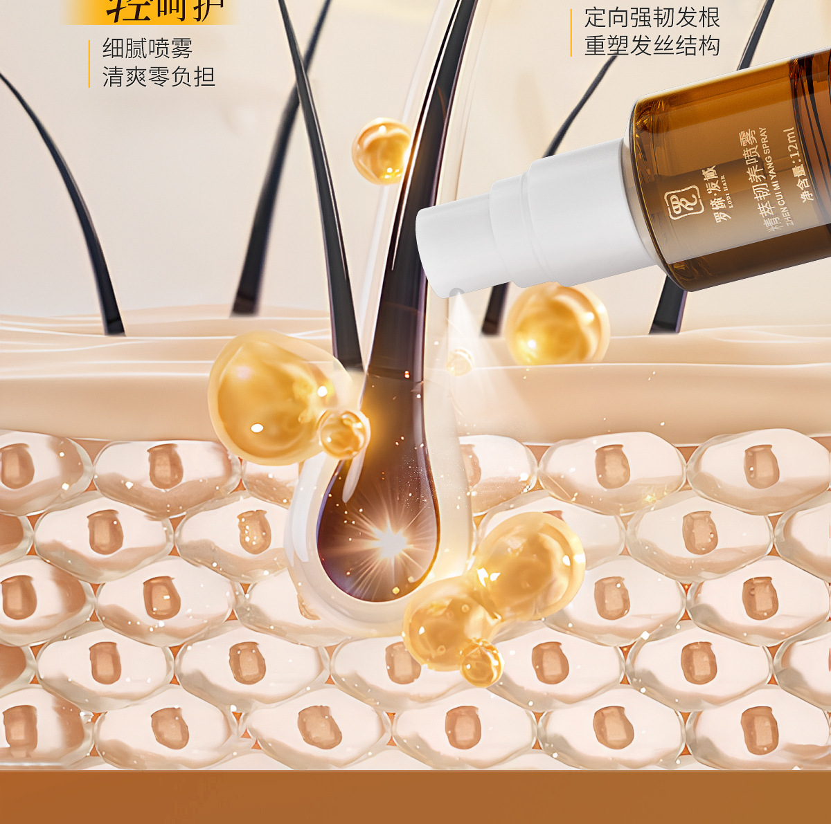 适宜人群:各种类型脱发人群。 作 用:精萃护发成分,滋养修护发丝,改善发丝分叉,减少断发,令秀发柔顺丝滑