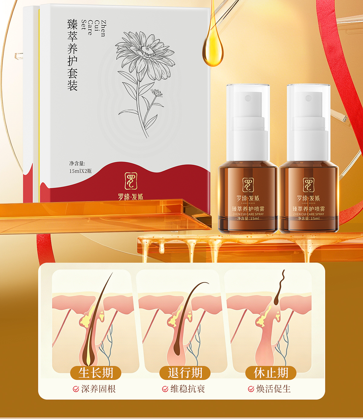 Zhen Cui Care Set适宜人群:各种类型脱发人群。 作 用:柔顺护发配方,滋养修护发丝,改善分叉、受损秀发,让秀发丝柔盈亮油韧性